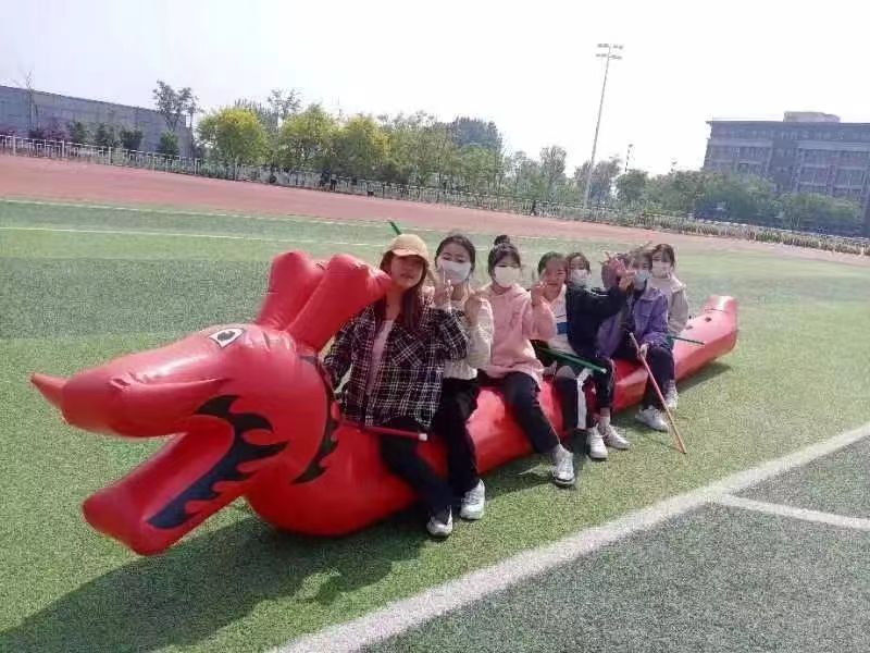 最后一个环节是旱龙舟游戏,考验团队合作精神,八个人一组,优先抵达终点的队伍取得胜利。