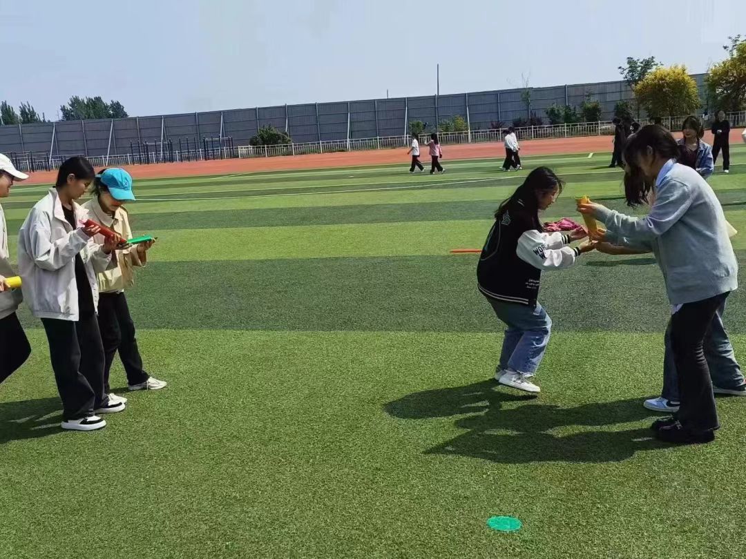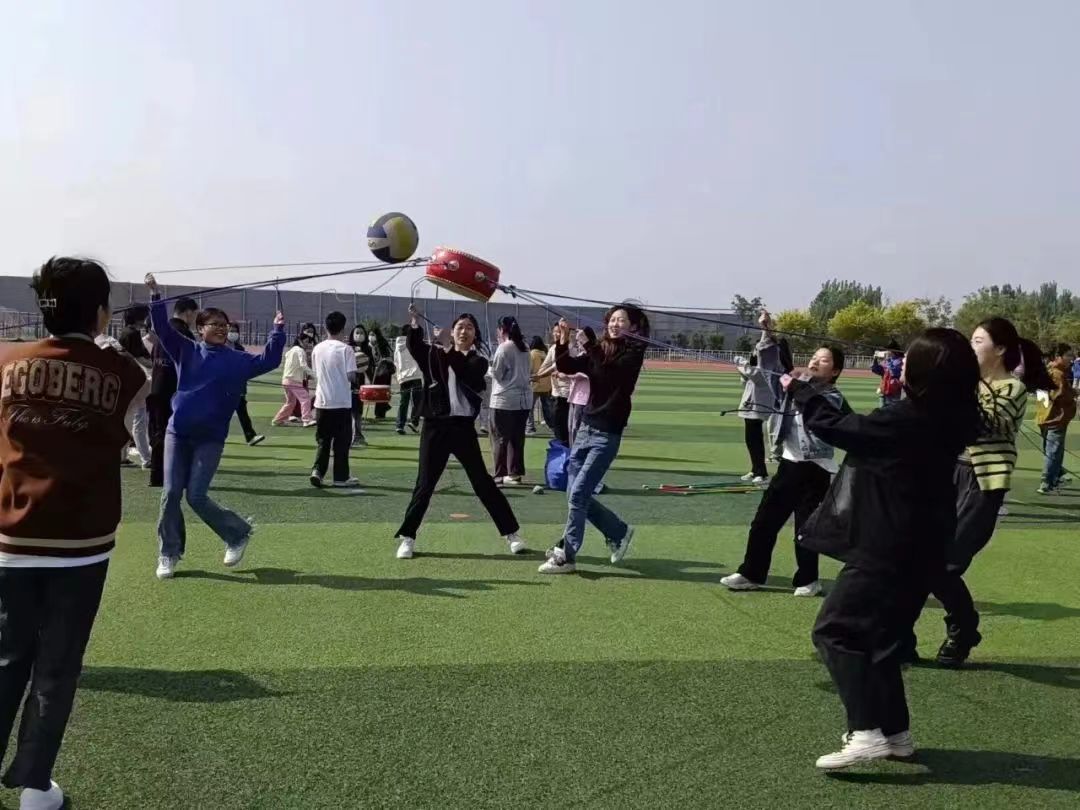 第一个环节喊数字抱团,同学们围成一圈慢跑。当老师喊出“3号”口令时,玩家立即按人数报三人一球,少于或多于三人者失败。第二个环节是击鼓传花,播放音乐,全班按顺序传球。音乐停止时,持球的同学进行才艺表演。