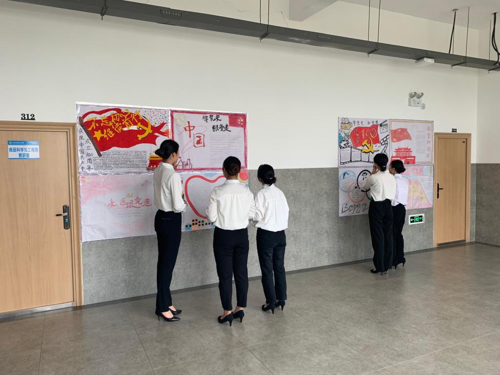 为深入推进党史学习教育,充分调动学生学党史的积极性,食工系党总支于6月25日上午组织全体党员、入党积极分子在综合实验楼3楼开展“百年党史青年绘”手抄报讲解活动。