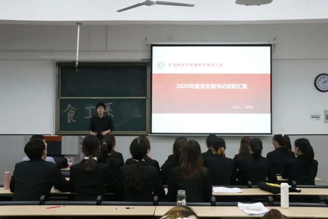 为深入学习贯彻党的十九大精神和习近平新时代中国特色社会主义思想,进一步推动全面从严治党向基层延伸,发挥好基层党组织先锋模范作用。食工系党总支于12月18日中午12:30在B2#407召开2020年度党支部书记述职会议,参加本次会议的有食工系第一党支部书记刘双华老师、第二党支部书记贾路路老师和全体学生党员。 会议开始,首先,由第一党支部书记刘双华老师和第二党支部书记贾路路老师分别围绕履行党建责任情况、党建工作开展情况、思想政治教育工作情况、疫情防控工作情况等内容依次对2020年度的党建工作做了系统、全面的汇报。接着,各党支部书记就2020年度党建工作中出现的问题,及时提出了切实的可行的计划和目标,为以后的党建工作提出了明确的方向。会议最后,由参会党员对本支部及支部成员进行民主评议并提供了相关意见和建议。 本次会议的召开,有利于党建工作的落实与贯彻,进一步促进了党内教育工作的扎实推进,营造了良好的党风氛围,为以后开展党建工作奠定了良好的基础。