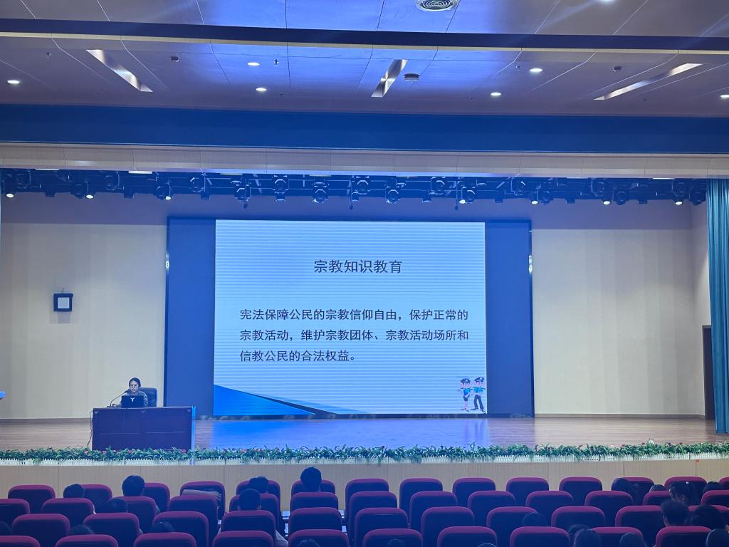 为深入学习贯彻习近平新时代中国特色社会主义思想,切实加强中国特色社会主义民族宗教理论、党的民族宗教政策和国家有关法律法规的宣传教育,增强防范校园传教的意识和能力。9月19日下午13时,食品工程学院在北校区文渊楼组织召开宗教知识教育主题班会。2023级全体新生参与此次会议,会议由郑红荣老师主持。