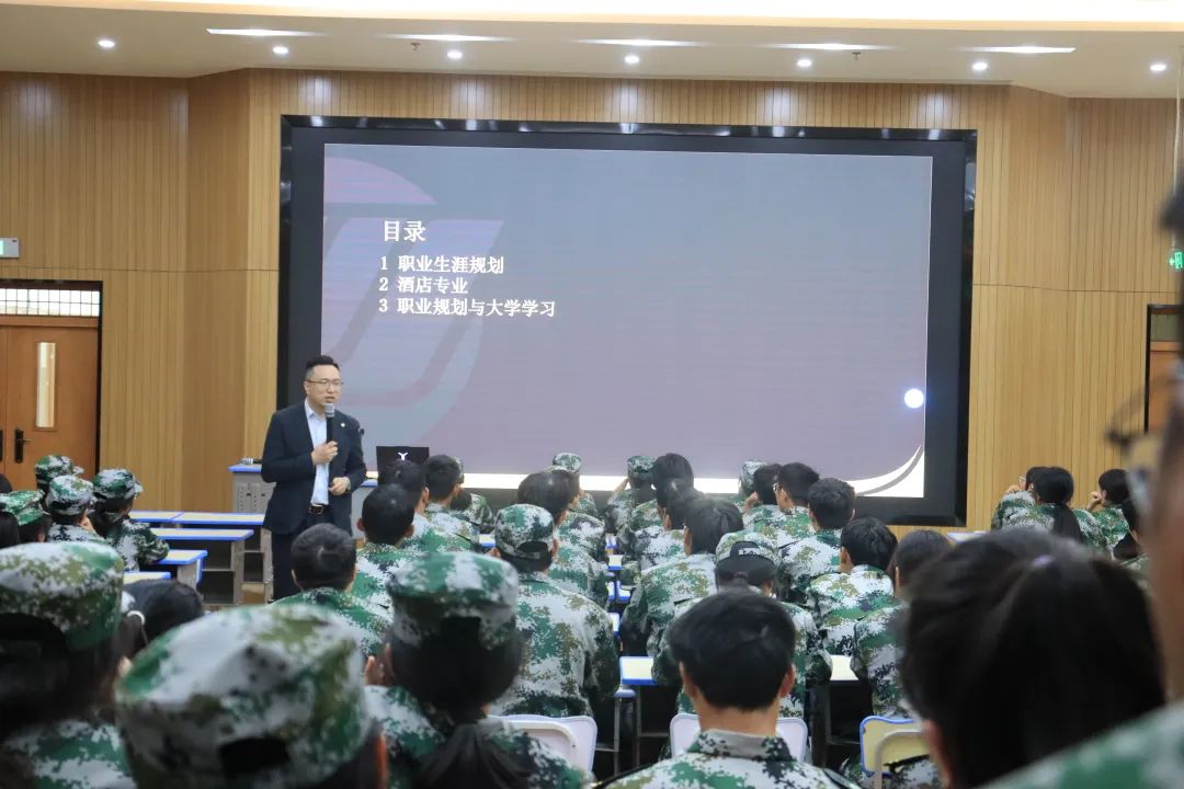 在南校区,石琨首先指出数字化转型是时代发展趋势,习近平总书记也提出要依靠信息技术驱动创新。不断催生新产业,新业态,新模式,用新动能推动新发展。作为新时代大学生要紧跟时代发展背景,充分利用学校提供的平台来培养创新意识和机会意识。接着石琨又总结了近几年旅游和酒店餐饮行业人的发展变化,以及未来行业发展的新趋势,他从自身职业发展历程讲述了职业发展目标和旅游类专业毕业生职业发展路径,旅游和酒店行业经理人应具备的素质和能力,并指导同学们如何做好职业规划,鼓励同学们努力学习旅游管理与酒店管理专业的理论知识,成为旅游与酒店管理行业的高素质人才。石琨在北校区针对大一新生着重强调虽然新冠疫情对旅游酒店行业造成较大打击,但其发展潜力是值得期待的。优秀的旅游酒店企业在给人带来良好的工作环境和职业体验、提高团队协作能力的同时,还能拓宽个人视野,提高个人素养。