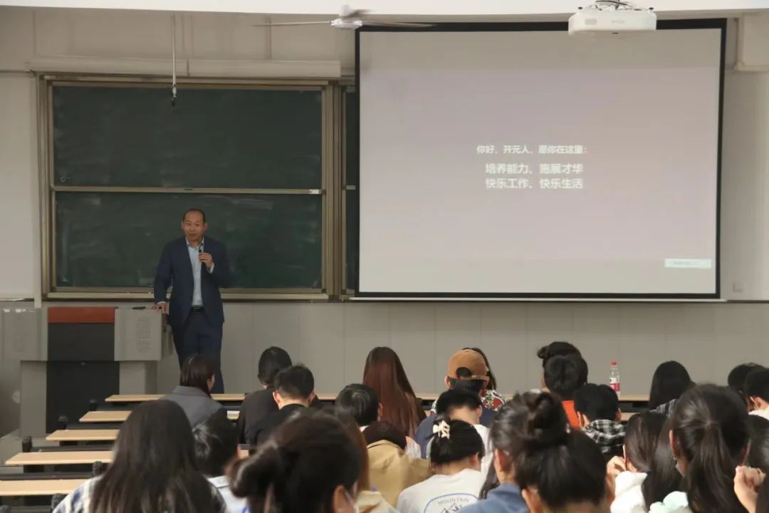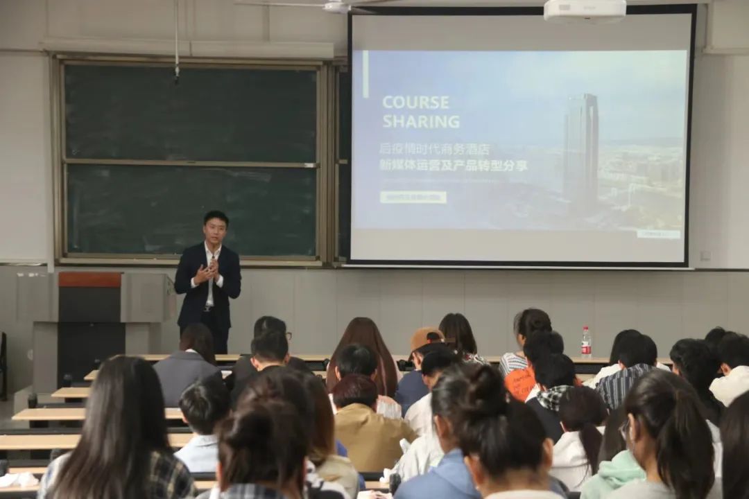 嵊州开元名都大酒店传媒部经理李昊轩同样以自身的成长和工作经历告诉同学们酒店发展有无限可能,疫情后的就业行业大有可为!