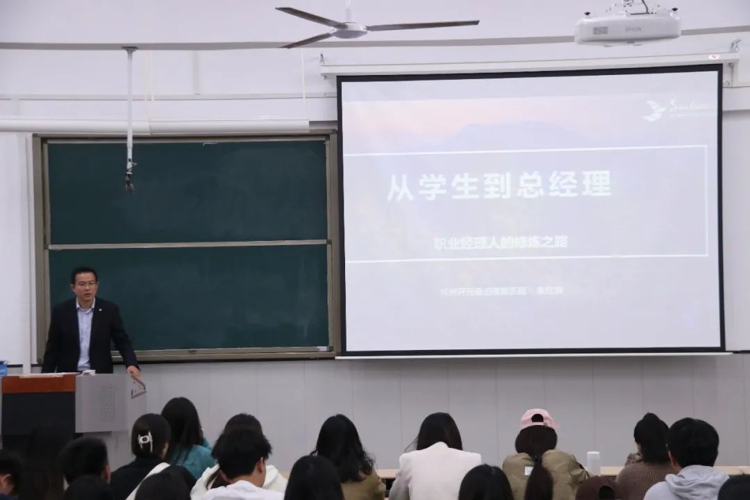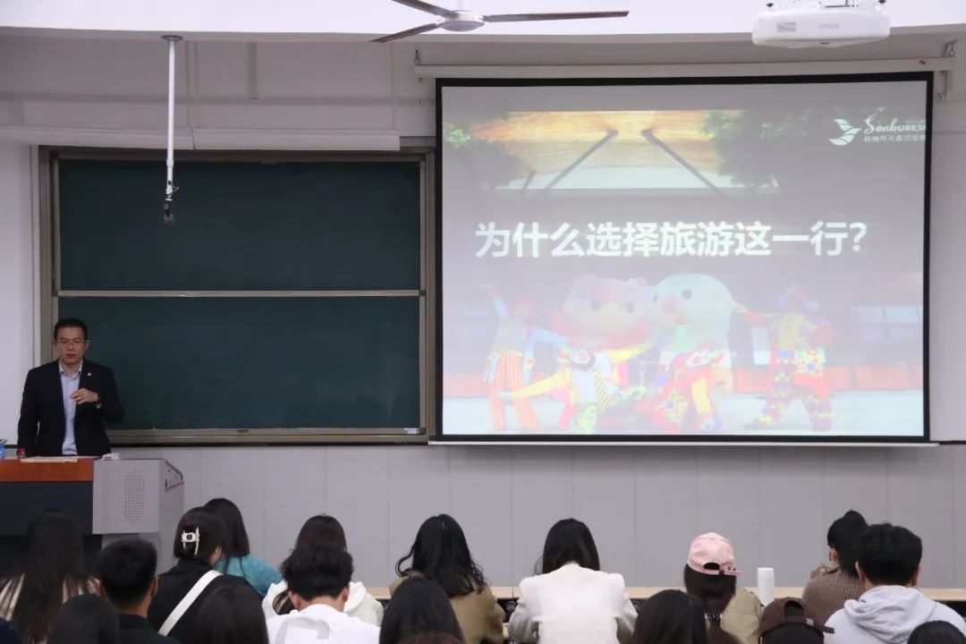 为了进一步提高人才质量培养,让同学们更多地了解就业实习知识,更加明确学习目标,帮助学生合理规划,实现自我准确定位。2023年10月19日下午,食品工程学院邀请杭州开元森泊度假乐园总经理朱红良在南校区教学楼1-407、北校区启智楼-229为同学们做讲座。参加此次讲座的有食品工程学院的部分老师和旅游管理类专业的学生。讲座由张素杰老师主持。