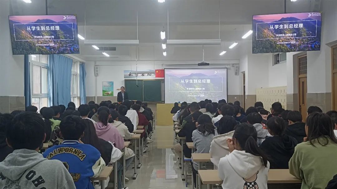 朱总结合自身的职业生涯,详细讲述了“如何从学生成长为总经理”的修炼之路,他强调,想成为一名专业人员要做好以下几个方面,第一,读懂宾客是前提,第二,提高品质是基础,第三,提升素质是关键,另外介绍了森泊人才培养体系,“新森代”培养路径等内容,让大家知晓了酒店工作者的成长路径。最后,朱总勉励同学们努力学习酒店管理知识,早日确定职业生涯规划及奋斗目标,成为一名优秀的酒店管理人才。