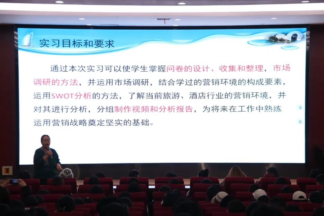 11月20日,食品工程学院在学院楼报告厅召开了酒店管理和旅游管理专业调研实习周动员会。此次专业调研实习周旨在使学生们掌握问卷的设计、收集和整理及分析方法,了解当前文旅及酒店行业的营销环境,开阔视野,学会用SWOT方法分析问题,提升实践及动手能力。