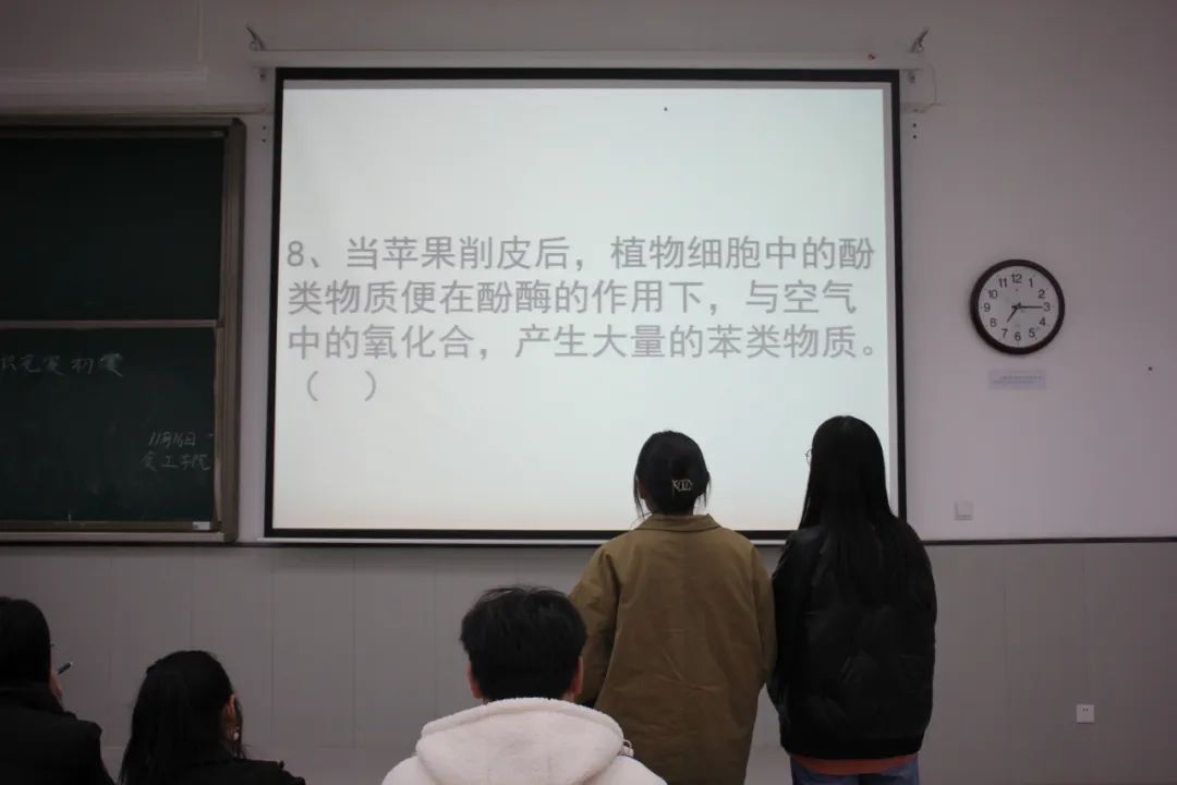 为使同学们能更好了解食品营养与安全相关知识,提高专业素养。食品工程学院于11月16日晚上7点在教学楼1-213、214和215教室,11月17日晚上7点在树人楼203、205和207教室举办食品营养与安全知识竞赛。