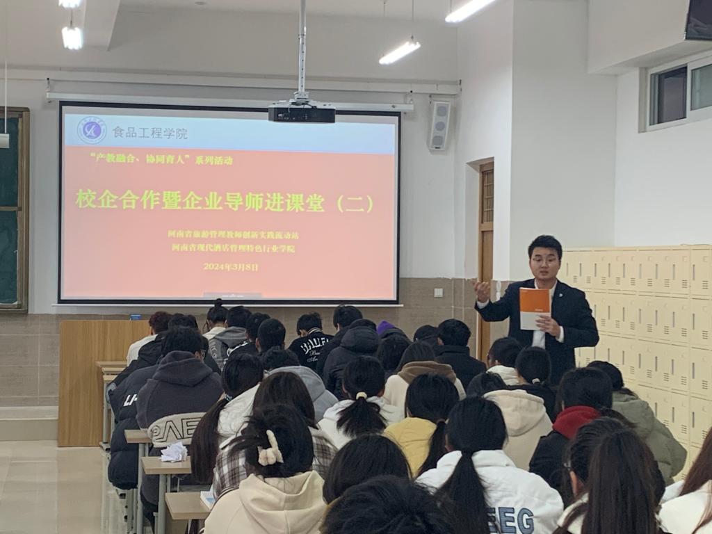 本次讲座是食品工程学院“产教融合、协同育人”系列活动的第二讲,通过行业导师的介绍,同学们感受到了森泊酒店成熟的管理模式、优秀的企业文化,增强了同学们对酒店管理专业学习的兴趣,进一步清晰对未来的规划。