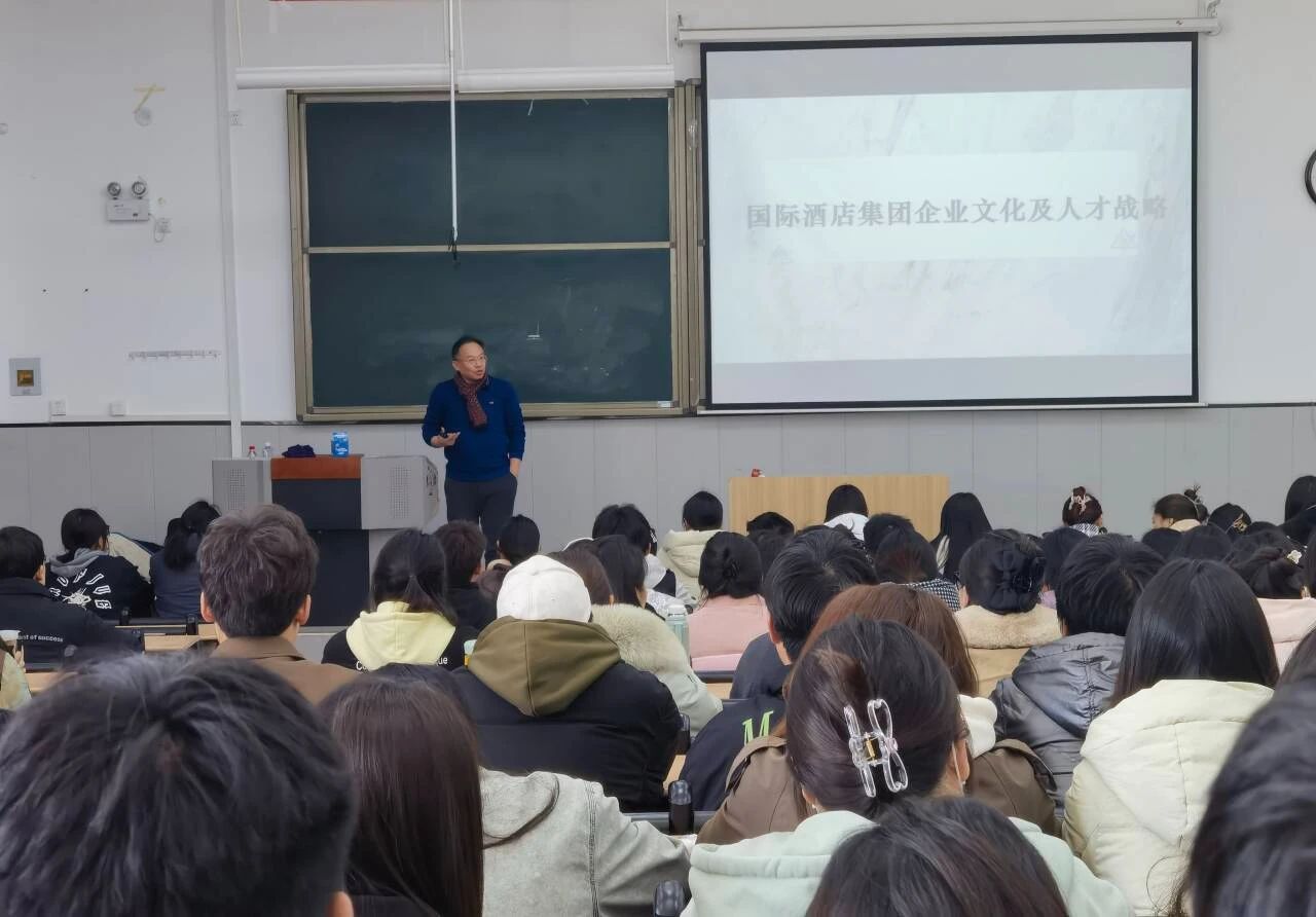 为促进河南省教师创新实践流动站及河南省特色行业学院建设,进一步提高同学们对酒店行业的认知水平,了解酒店产业发展趋势,引领学生尽早规划职业生涯,食品工程学院特邀万豪集团校企合作负责人杨骏于3月7日下午分别在南北两校区为同学们作主题为《国际酒店集团企业文化及人才战略》的专场讲座。讲座由张素杰老师主持,旅游管理教研室全体教师和酒店管理、旅游管理专业学生参加讲座。