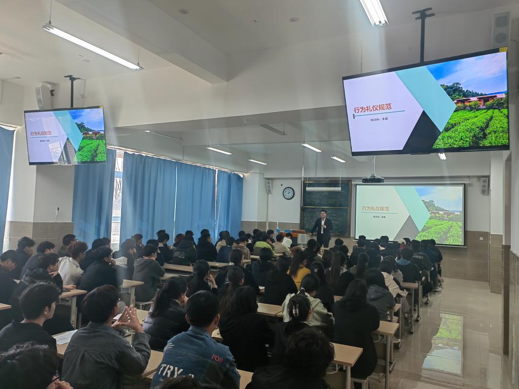 3月20日邀请企业专家开元森泊管理公司招聘总监单磊,为2023级旅游管理、酒店管理专业学生做了题为《员工行为礼仪规范》的讲座。通过讲座使学生们了解何为礼仪、礼仪作用、礼貌礼仪标准、服务仪态标准等内容,为今后从事服务业打下坚持的基础。
