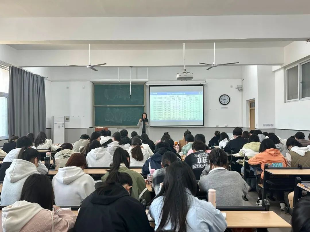 会议中张晓娜从考研情况、考研线分析以及近四年学院考研成果三个方面进行了分析,为同学们提供了宝贵的建议和指导。