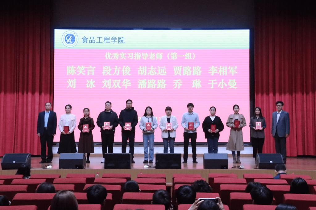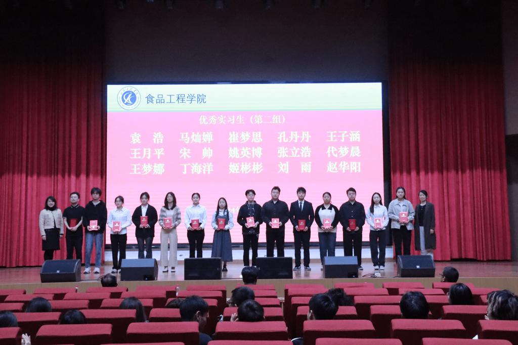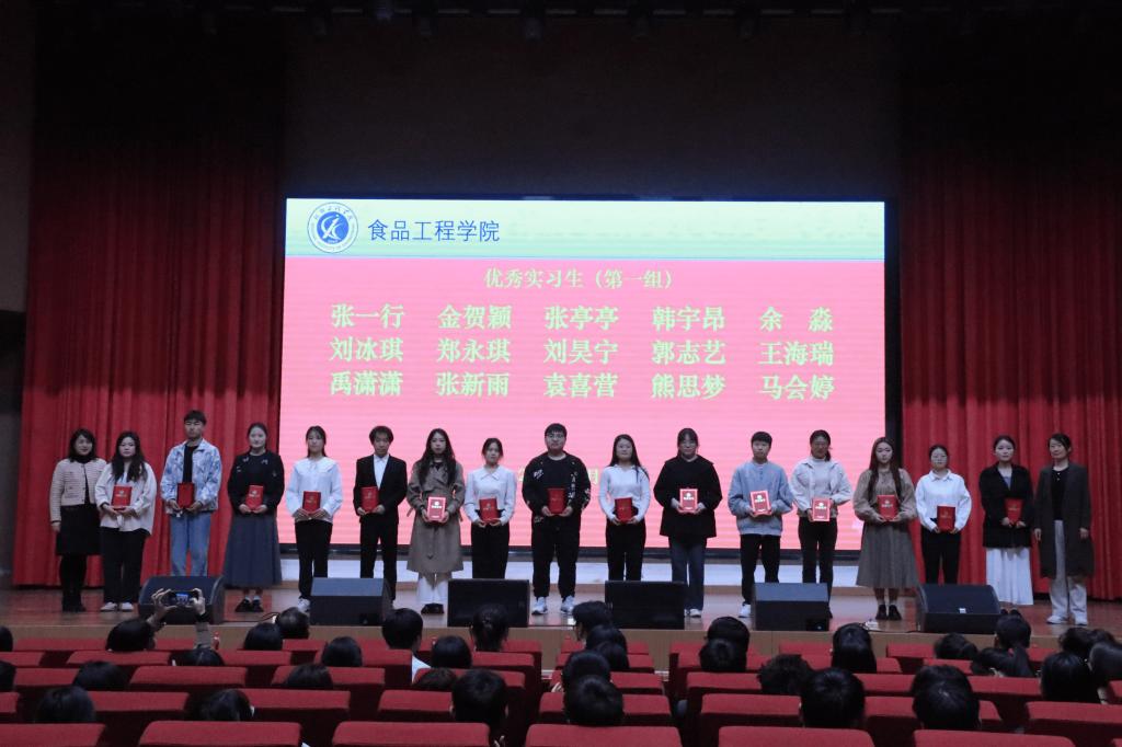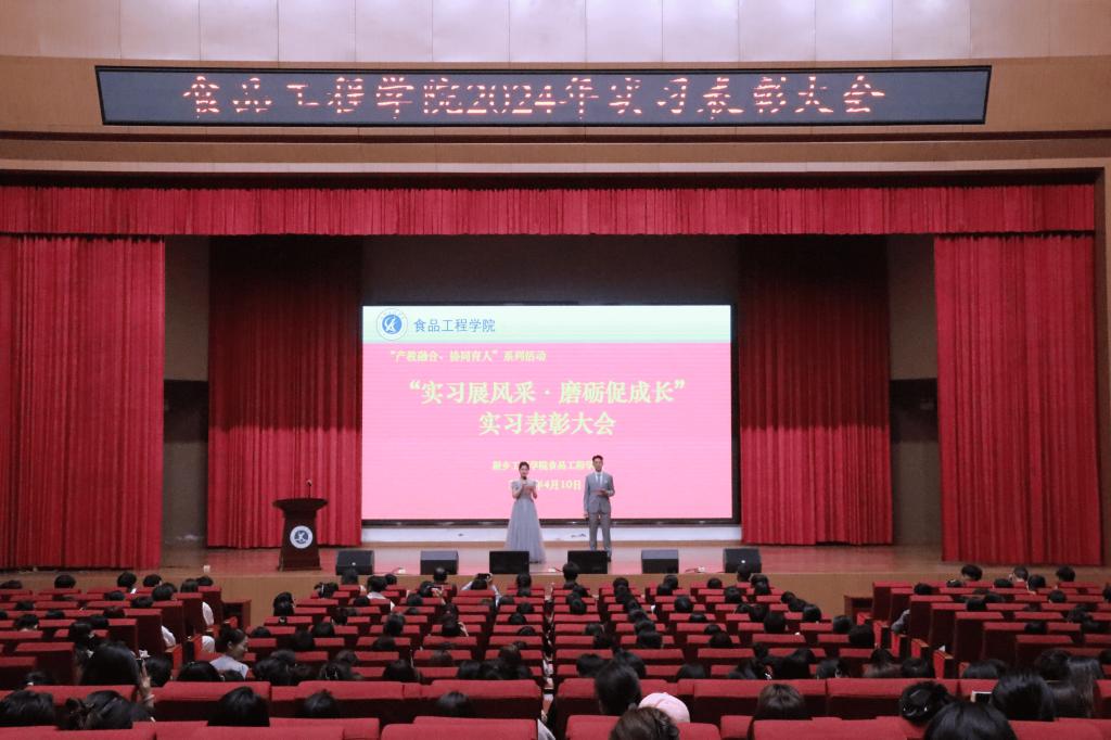 为表彰在实习期间表现优秀的实习生,并激励广大同学在未来的实习中更加努力,不断提升自己的实践能力和综合素质,4月10日中午,食品工程学院在B3报告厅举行了“实习展风采、磨砺促成长”实习表彰大会,参加会议的有副校长赵一鹏、院长马汉军、副院长孙华迪、党委副书记张晓娜、学院全体教师、优秀实习生及25届毕业生。