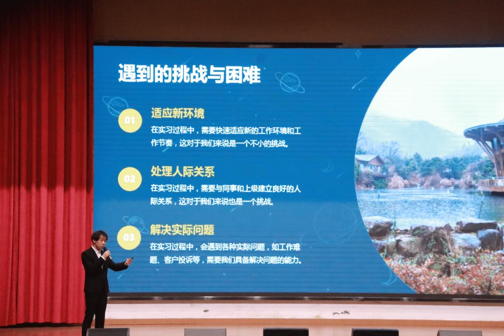 最后,副校长赵一鹏进行总结发言。他对我院的实习工作给予高度肯定,强调了产教融合、协同育人的重要性。赵校长指出,实习是学生们成长成才的重要途径,也是学院人才培养工作的重要组成部分。赵校长表示,未来将继续加大对实习工作的投入和支持力度,希望同学们能够珍惜学院为大家提供的实习机会和实习环境。同时,他也希望广大师生能够积极参与到产教融合、协同育人的实践中来,共同推动学院人才培养工作的创新和发展。