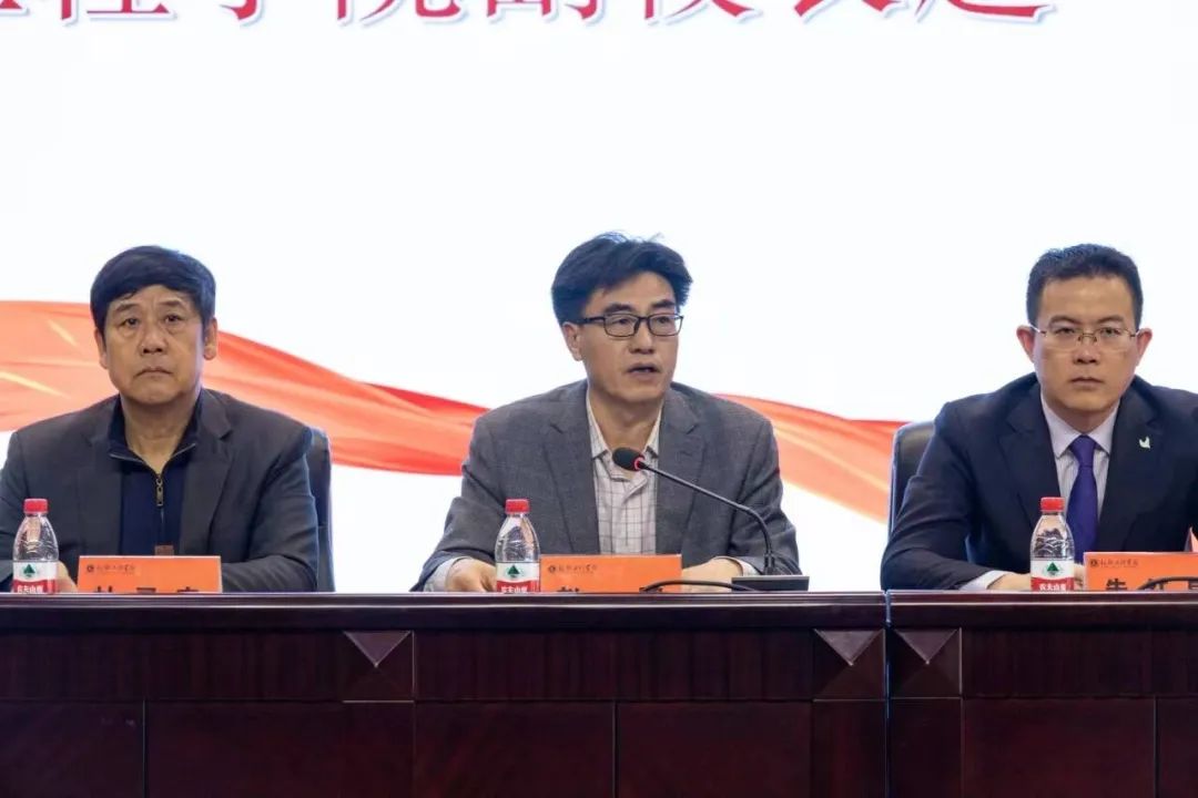 仪式上,院长马汉军首先介绍了出席本次开班仪式的各位领导和嘉宾。随后副校长赵一鹏致欢迎辞,对出席仪式的领导和嘉宾表示热烈的欢迎,赵校长回顾了我校与杭州开元森泊度假乐园的合作成果,并对杭州开元森泊对我校长期以来的鼎力支持表示感谢。赵校长表示今天的河南省酒店数字化运营行业学院“菁”英班开班仪式既是我们校企双方深化合作又一重要成果,也是我们学校校企合作的重要举措,更是食品学院发展的新的突破。同时,赵校长还对“菁”英班的同学们提出了三点要求,一是要恪守承诺,努力学习。二是要珍惜机会,感恩前行。三是要严于律己,示范带头。希望同学们要把荣幸换成动力,严格要求自己,做好榜样示范作用。