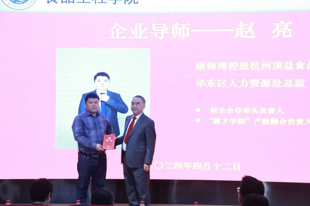随后进行企业导师聘任仪式,赵一鹏副校长宣读了聘任决定,张现周校长依次为14位企业导师颁发聘书。