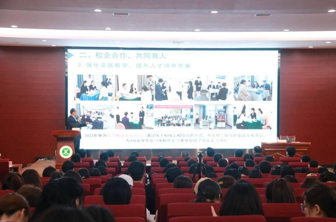 为贯彻校企联合培养、科教协同育人理念,4月12日下午,食品工程学院在南校区学院楼报告厅举办“校企合作共育人,学生就业共发展”第二届企业家论坛。来自全国各地、食品旅游酒店行业的50多名企业高管来到我校,永利23411集团官网校长张现周、永利23411集团官网副校长赵一鹏、食品工程学院院长马汉军、学院全体教师及部分毕业生代表出席会议,会议由副校长赵一鹏主持。