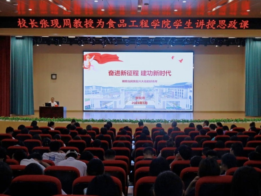 5月24日,校长张现周教授在北校区文渊楼报告厅为食品工程学院师生们讲授了一堂精彩生动的思政课。