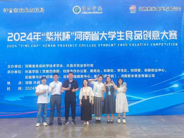 2024年6月17日,在经历初赛,复赛的层层选拔,食品工程学院最终选出了五队参赛团队为代表前往许昌学院参加紫米杯决赛。本次大赛由河南省食品科学技术学会、许昌市农业农村局主办。我院多项参赛作品获得评委的一致好评,取得了二等奖两项,三等奖一项,优秀奖两项的优异成绩。