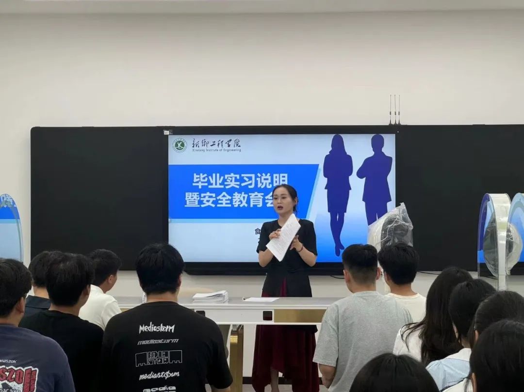 为确保实习生顺利完成实习任务,学院成立教师指导团队作为学生完成实习任务的坚实后盾,帮助同学们解决实习期间遇到的各种难题。出发前,指导老师为各位同学召开毕业实习说明暨安全教育会议,会上强调了实习单位的安全规章制度,要求同学们严格遵守,确保工作过程中的操作安全,此外,还涉及了交通安全、人身安全、网络安全等多方面的教育内容,帮助同学们树立全面的安全意识,鼓励同学们在实习期间不仅要努力提升专业技能,更要时刻关注自身安全,做到防患于未然。同时,学院也建立了紧急联络机制,确保在发生任何意外情况时,能够迅速响应,为实习生提供及时有效的帮助与支持。