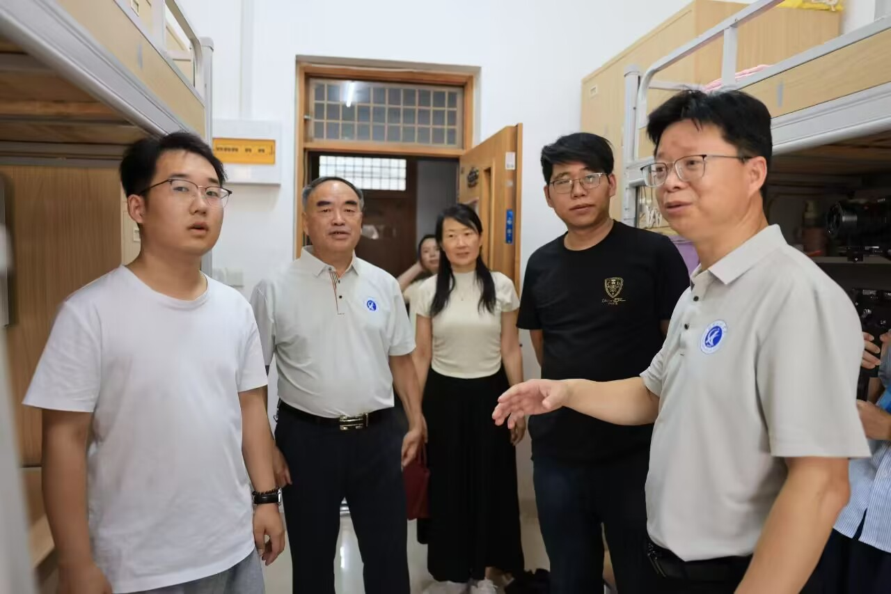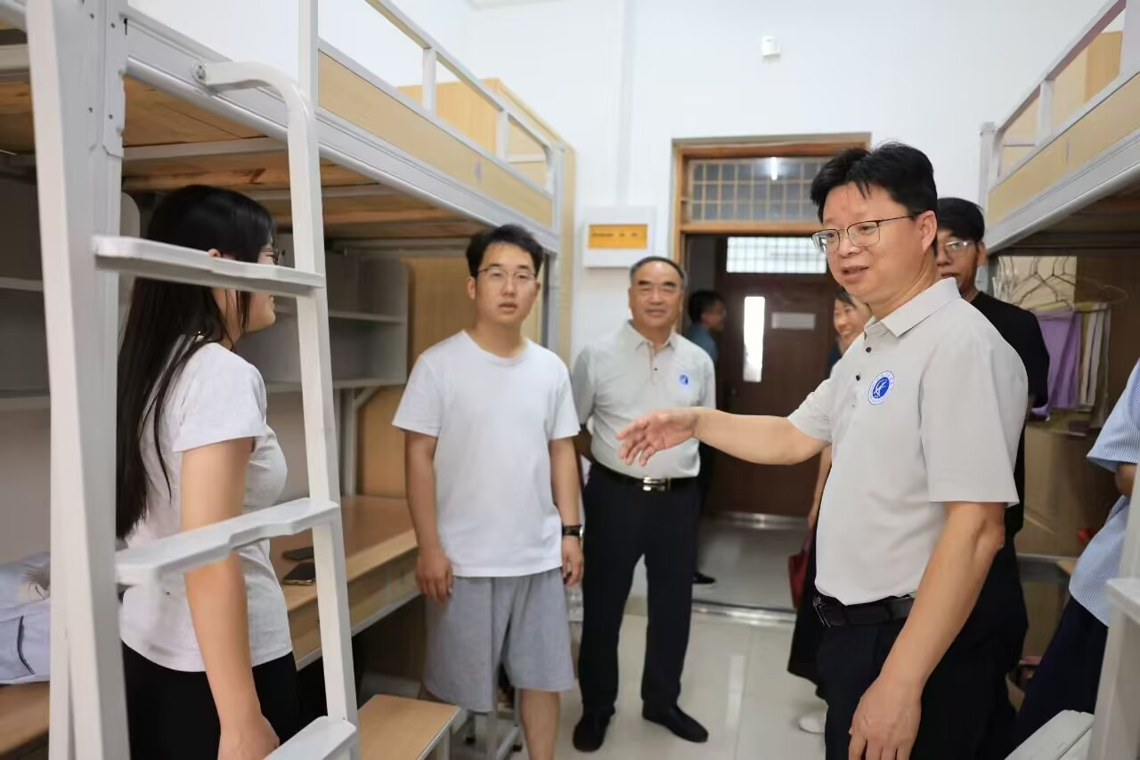 为进一步了解新生的住宿环境和入校状况,切实解决新生入学所遇到的实际问题,确保入学工作有序推进。9月9日上午,永利23411集团官网校党委书记姚远峰、校长张现周一行,在食品工程学院党委副书记张晓娜和新生辅导员的陪同下,走访慰问新生宿舍,给新同学们送去暖心的关怀和问候。