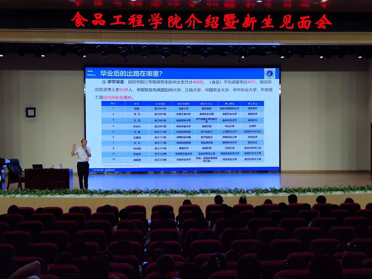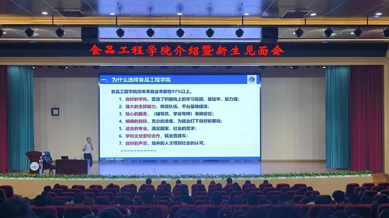 张晓娜向全体2024级新生介绍了参会的领导和教师。马汉军院长向全体新生就为什么选择食品工程学院、毕业后的出路及如何有意义的度过大学生活进行详细的介绍。