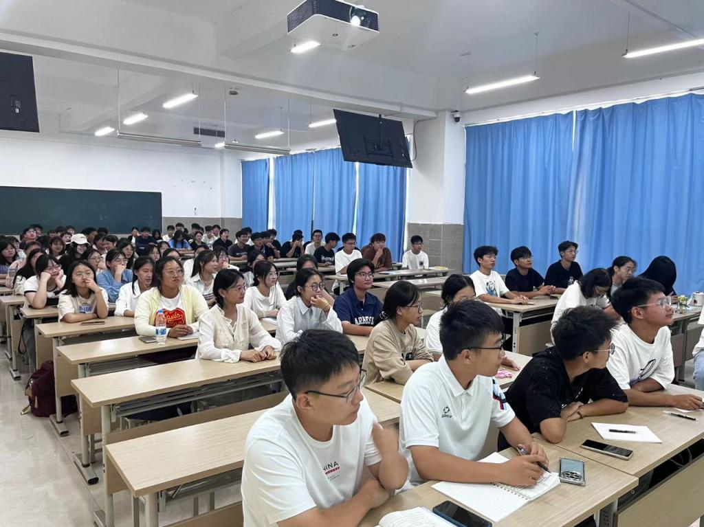张老师以一段短视频作为开场,迅速吸引了同学们的注意,之后从专业基本情况、发展与就业、大学生涯规划三个方面,为同学们介绍了学院的特色、就业优势和发展前景。张老师还分享了几个杰出校友的成长故事,他们都是各自领域的佼佼者,他们的成长经历证明了专业学习与实践相结合的重要性,更成为了新生们前进道路上的灯塔,激励他们树立更高远的目标。