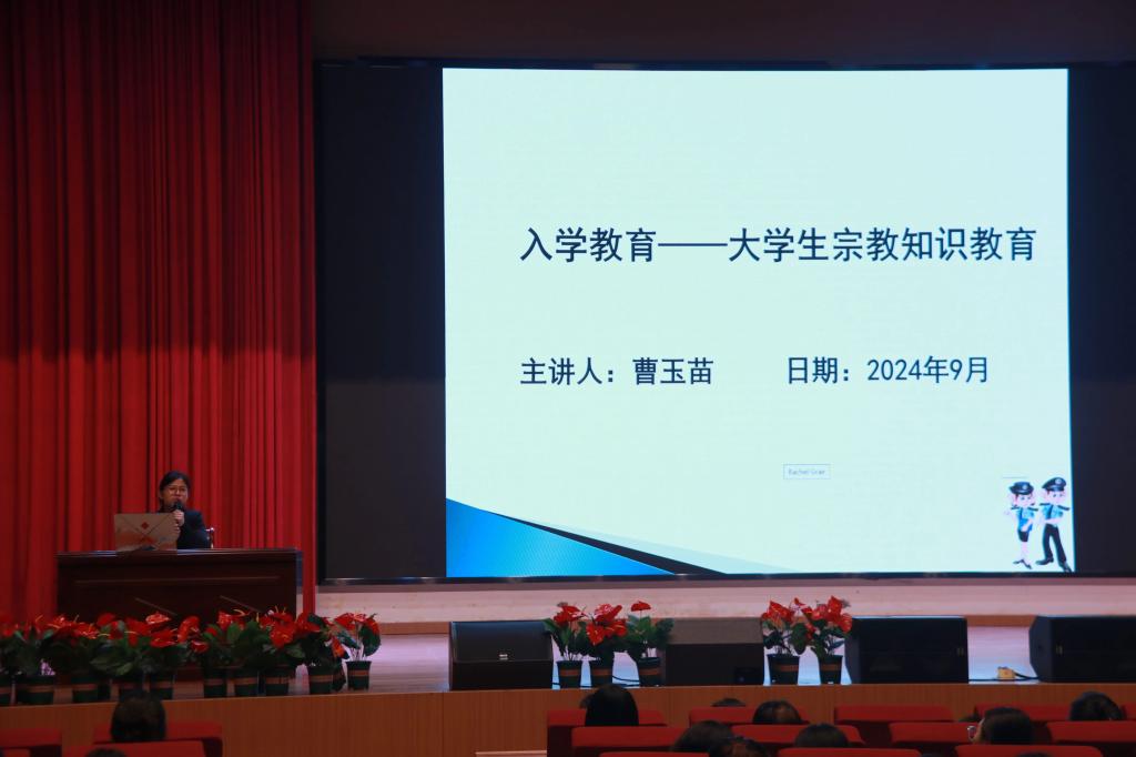 会议中,曹玉苗老师向新生们详细讲解了我国的宗教政策,强调大学生应树立正确的宗教观,自觉抵制非法宗教活动和宗教极端思想的渗透。曹玉苗通过真实案例,让新生们深刻认识到非法宗教活动的危害,增强了他们的防范意识。周笑楠老师对学生手册中的奖惩内容进行了全面解读,包括奖助学金评定、违纪处分规定和学生申诉权利,让新生们对大学的规章制度与自己享有的权利义务有了清晰的认识。两位老师还鼓励新生们在大学期间要努力学习,积极参加各项社会实践活动,不断提升自己的综合素质。