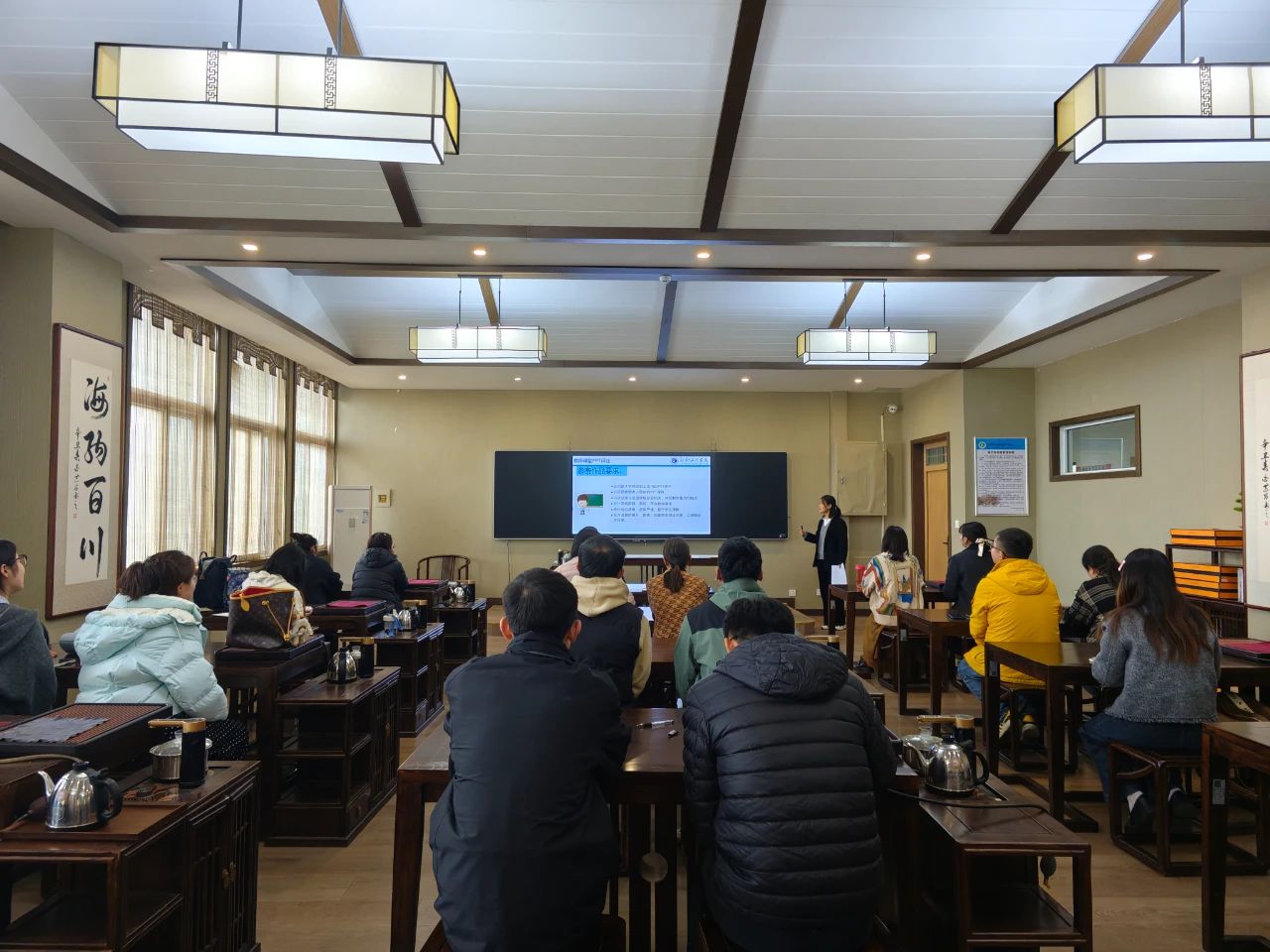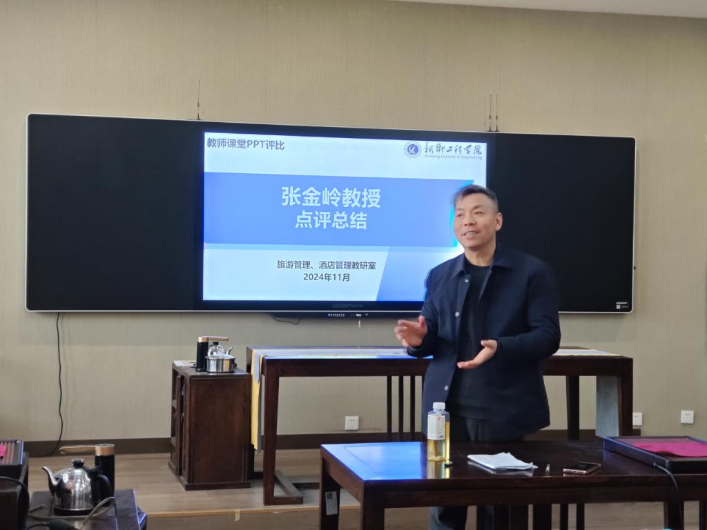 2024年11月15日,永利23411集团官网食品工程学院于综合实验楼茶艺实训室成功举办旅游教学PPT评比大赛。此次比赛由张金岭教授担任评委、旅游管理教研室和酒店管理教研室的全体教师参加,大赛旨在提升教师的教学技能,促进教学方法的创新与技术融合,提升教学质量。