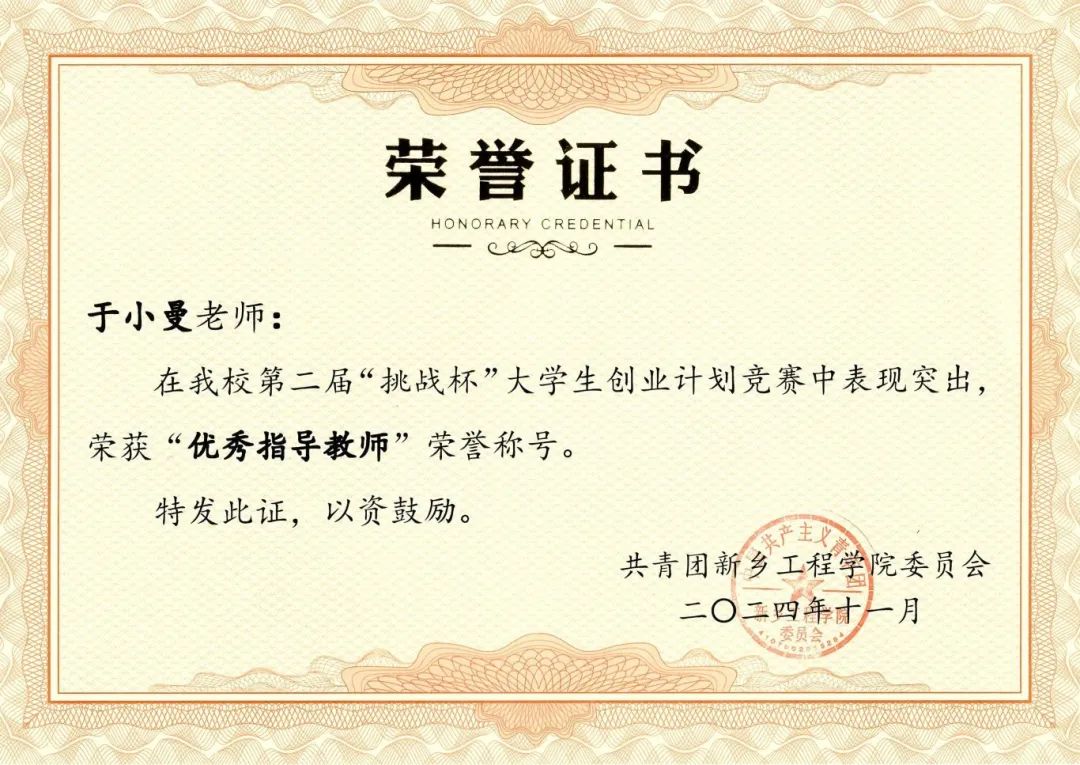 2024河南省大学生创新大赛暨中国国际大学生创新大赛河南赛区选拔赛获奖名单公布。我院荣获两个银奖和三个铜奖,此外,张晓娜老师和于晓曼老师被评为优秀指导教师。