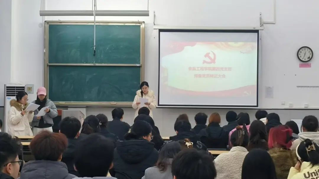 12月4日食品工程学院第一、二、三、四党支部于茶艺室、教学楼1-106召开预备党员转正大会,各党支部全体党员出席本次会议。