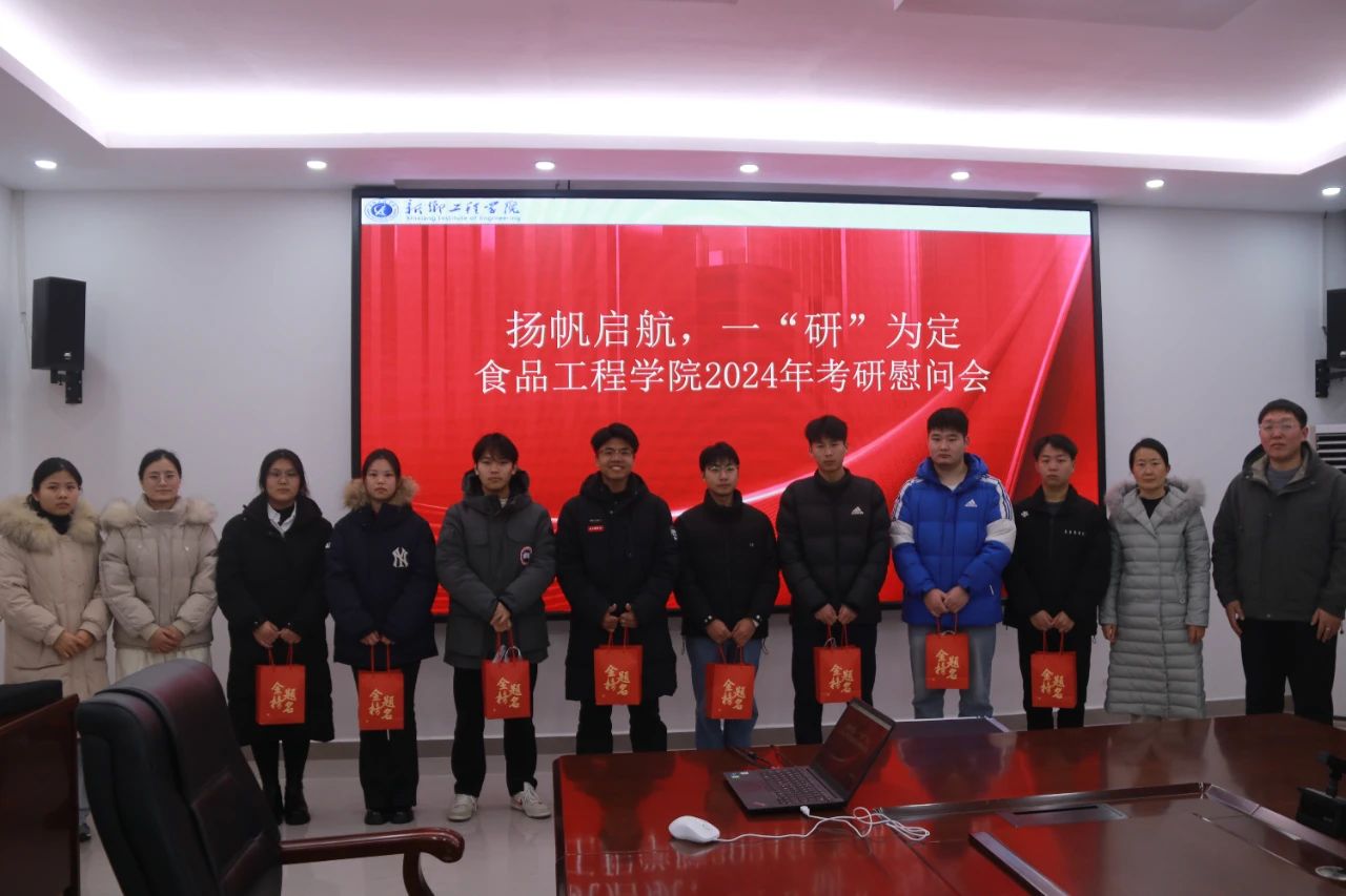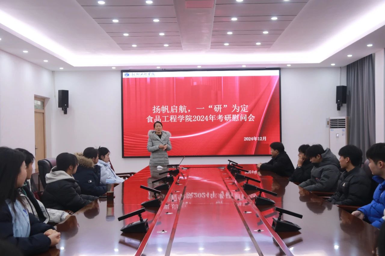为鼓舞考研学子士气,增强备考信心,食品工程学院于12月11日下午3点,在综合实验楼B1-201 举办了以“扬帆起航,一‘研’为定”为主题的考研慰问会。食品工程学院党委副书记张晓娜,全体毕业生辅导员以及我院全体考研学子参加,活动由我院团委书记杨淑云主持。