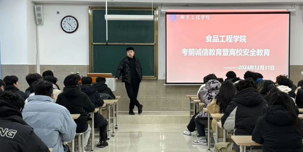 为加强考风考纪建设,营造公平公正的考试环境,培养诚信品质,同时提醒同学们提高假期安全意识。食品工程学院全体辅导员分别组织召开了诚信考试暨安全离校主题班会,全体学生参加了此次会议。
