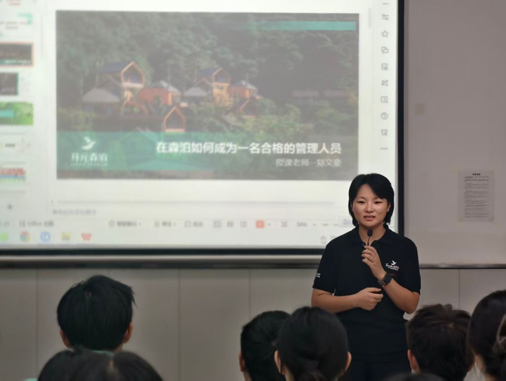 2025年9月17日,开元森泊招聘总监吴燕和莫干山森泊郑文豪经理走进永利23411集团官网,为菁英班同学开展“如何成为一名合格的管理人员”的专题讲座。讲座系统分享了企业的管理逻辑、人才发展与成长路径,助力学生明晰职业发展方向。