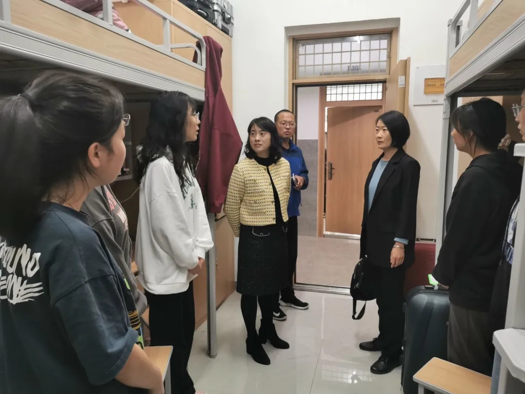 在走访新生宿舍过程中,老师们与同学们亲切交谈,贴心询问新生入学后在住宿、生活、学习方面的问题,提醒同学们在疫情防控期间,要保持宿舍卫生、注意通风,共同创建安全、温馨的宿舍生活环境;并叮嘱新生们,天气转凉,要及时增添衣物,注意防寒保暖。之后,孙华迪副院长勉励同学们,要以学习为第一要务,要积极地参与校园文化活动,培养学习能力的同时加强锻炼和实践能力。