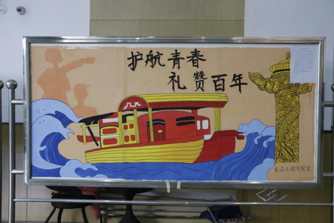 食品工程学院团总支组织学生绘制“护航青春成长,礼赞建党百年”宣传展板,此次展板活动充分展现了我院昂扬向上的精神风貌,向全体师生展示了百年建党历程,呼吁同学们践行和发扬建党精神。