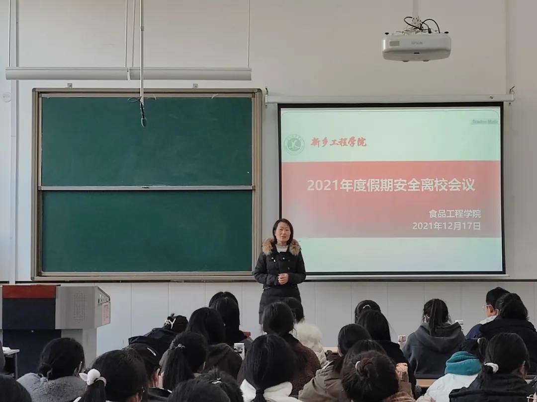 为确保学生安全、文明离校,食品工程学院分别于12月17日、20日开展安全离校会议。参与此次会议的有食品工程学院党总支副书记张晓娜,19级辅导员刘双华,20级辅导员赵丽辉以及19、20、21级全体同学。首先,老师强调安全离校的注意事项,包括宿舍关闭时间,离校前将门窗关好,断水断电,随身保管好贵重物品和重要证件,离校后及时与家长联系,注意交通安全,乘坐正规车辆等事项。接着,老师提醒同学们要时刻关注疫情变化,积极配合各地疫情防控工作,另外在寒假期间要注意预防诈骗,警惕传销组织,提高自身警觉性。最后,老师预祝全体同学新年快乐,假期愉快,并希望同学们都能够利用寒假时间提升个人能力,不断完善自己。