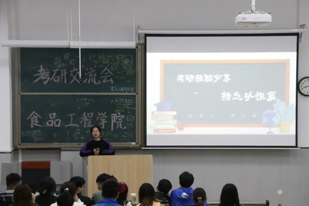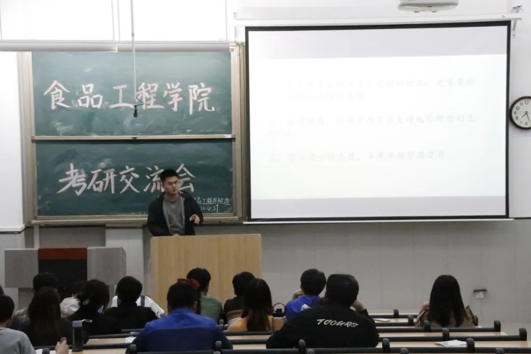 为了进一步提高我院学生的考研热情,提高学生考研技巧掌握度,帮助考研学生明确学习目标,规划学习道路,找到适合自己的高效备考方法,食品工程学院于4月27日晚上7:20在教学楼1-110开展考研交流会,本次交流会诚邀18级在研究生考试中取得优秀成绩的学生进行讲解。