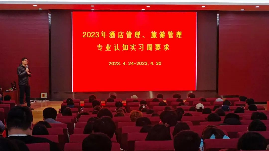 为加强对专业的了解和认识,培养学生们分析解决问题的工作能力。4月24日,食品工程学院于在学院路报告厅进行专业认知实践周动员大会,2022级旅游管理、酒店管理专业同学参加了此次动员大会。