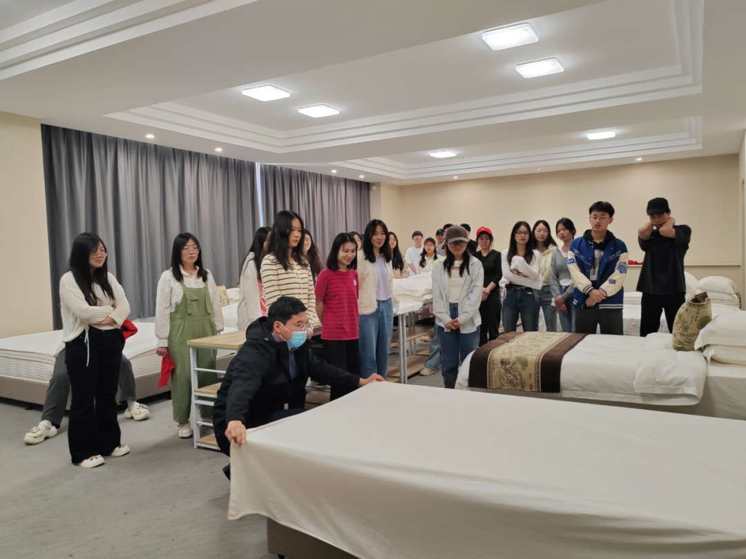 本次校内认知实习以“锻炼实践能力,提升综合素质”为主题,将所有认知实习周参加班级划分为10个大组,每组30人,对5个实训室进行交叉参观,分别有:客房实训室、中餐实训室、西餐实训室、酒水实训室、茶艺实训室。参观学习主要环节包括:实训室设备设施及用品了解、实操动作体验、相关礼仪培训等内容。参加校内认知实习周的同学表示通过本次校内实训的参观学习,了解专业技能培养的重要性,对本专业的兴趣更加浓厚,大大激发了今后刻苦学习和淬炼技能的坚定信心。