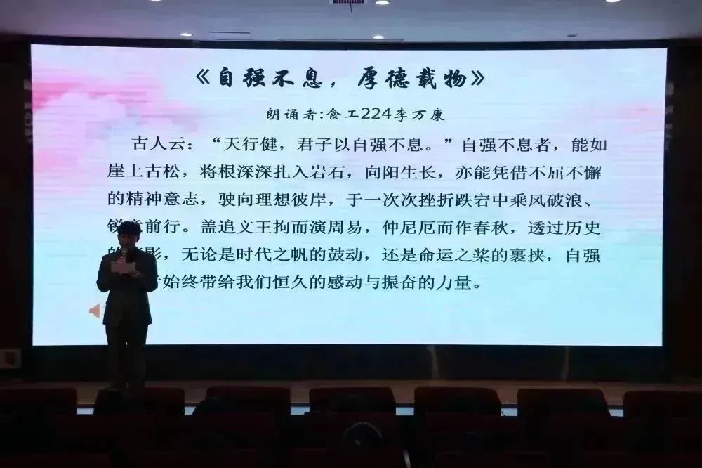 为深入贯彻落实习近平新时代中国特色社会主义思想和党的二十大精神,强化文化自信的价值引领,弘扬爱国奋进的主旋律,传播积极向上的正能量,营造“学经典、读经典、品经典”的社会氛围。近日,食品工程学院在学院楼报告厅举办“益重读书志,风霜恒不渝”星空讲堂主题活动。
