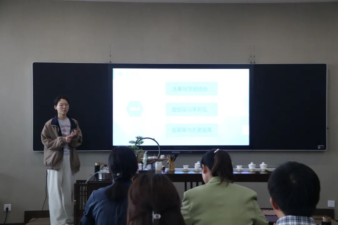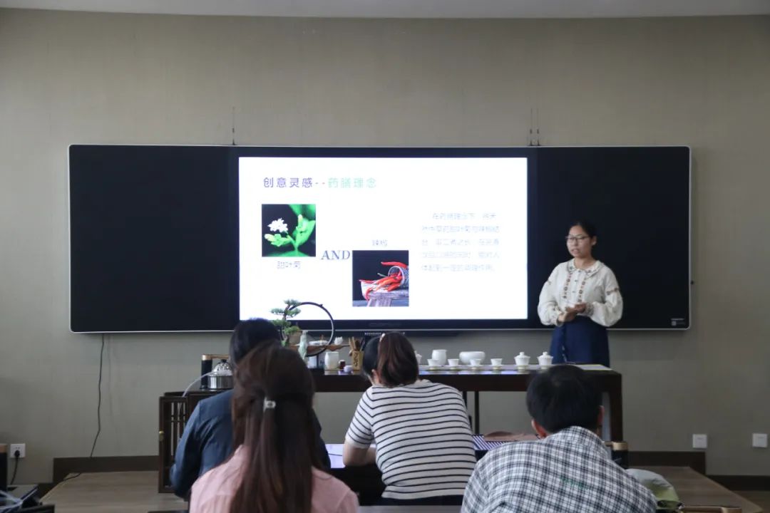 本次创意大赛作品分为四大类,包括茶点类、茶馐类、茶饮类、茶文化艺术类等。参赛选手从茶食品的传统元素及市场需求出发,进行食品创新设计和营销策略设计。大赛初始,刘冰老师阐述了此次比赛的目的与重要性,介绍了此次比赛的规则,同时对参赛队伍提出了殷切的期望。接着,各组选手依次上台从产品介绍、理念来源、原料特点及功效、创新点以及产品定位和市场潜力与前景等不同方面对作品进行详细讲解介绍,各组汇报人思路清晰,条理分明且各具特色的将各自核心的设计理念充分地展现了出来。最后,同学们纷纷表示通过参加此次大赛有利于自身逐步形成勇于实践、敢于创新的良好品质,同时能够通过参与活动中得到锻炼,提高了自身的创新实践能力。