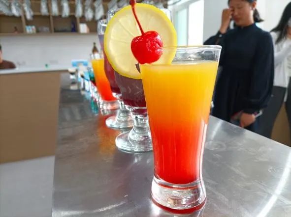 本次实习周分为酒水制作和茶艺实践两个模块,分别在酒水实训室和茶艺实训室开展。酒水方面赵瑞丽老师向同学们开展六大基酒教学、开展杯饰样本教学和鸡尾酒制作教学。制作了莫吉托、玛格丽特、天使之泪、红粉佳人等,考核过程以抽签方式确定鸡尾酒考核项目,同学们相互帮助,拍照记录制作过程中的每一步,发现不足,提高帮助,在制作同时同学们也品尝了自己的作品,感受鸡尾酒的魅力。