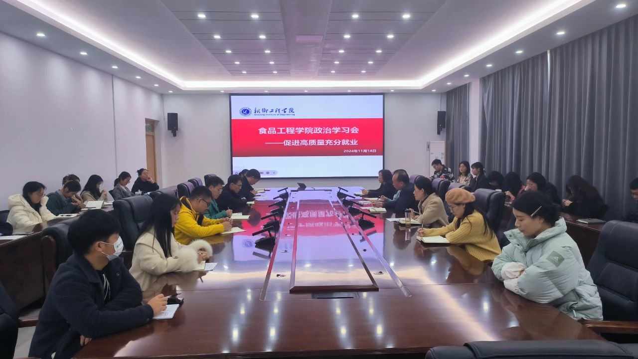 10月14日,食品工程学院组织召开政治学习会议,认真学习贯彻习近平总书记关于促进高质量充分就业重要讲话精神。食品工程学院全体教师参会,会议由学院党委副书记张晓娜主持。