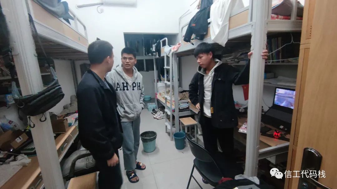 为进一步创建安全、和谐、有序的宿舍生活环境,更好地推进疫情防控工作,10月19日晚,信工学院全体辅导员老师走访学生宿舍。深入了解同学们线上学习、工作、生活及心理健康情况,并对如何做好宿舍的防疫工作进行了宣传教育。