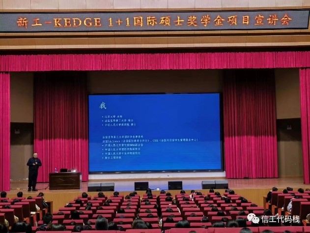 为让我校师生对新工-KEDGE 1+1国际硕士奖学金项目进行深入全面了解,4月28日下午2:30,信息工程学院举办KEDGE1+1国际硕士奖学金项目宣讲会,学院全体2019、2020级学生及辅导员出席会议,宣讲会由我校副校长李左峰主讲,学院副院长秦小平主持。