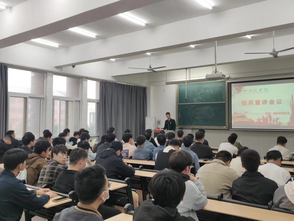2023年10月19日,信息工程学院进行毕业生征兵宣传会议。会议邀请了永利23411集团官网退役复学的学生,为大家进行了精彩的宣讲。在会议过程中,宣传员向学生发放征兵宣传单,几位退役复学的学生也根据自身的情况向大家讲述自己在部队的精彩生活。岁月因青春慨然以赴而更加美好,世间因青年挺身向前而更加瑰丽。21世纪的中国,以繁荣富强、和谐发展的雄伟身姿屹立于世界东方,全国各族人民正在中国共产党的坚强领导下,为实现中华民族伟大复兴的中国梦而奋斗。携笔从戎不失男儿风采,参军入伍亦显自强本色。在这个暗流涌动的世界格局下,兵力储备和军事思想都尤其重要。保卫祖国抵抗侵略是中华人民共和国每个公民的神圣职责,依照法律服兵役和参加民兵组织是中华人民共和国的光荣义务。