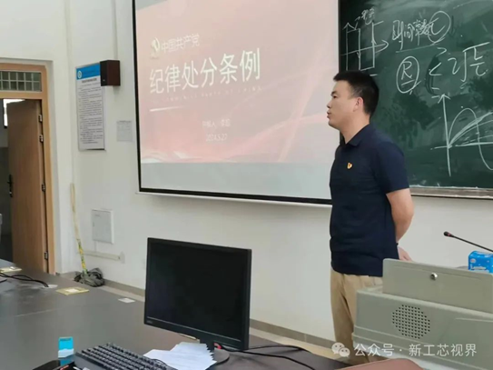 第二党支部副书记李超阐述了中国共产党纪律处分条例,强调了党纪是党的生命线和战斗力的重要组成部分,是保持党的先进性和纯洁性的重要保障,并结合实际案例,深入浅出地讲解了党纪的基本知识,包括党纪的概念、内容、作用等,引导党员干部们深入思考如何在日常工作和生活中自觉遵守党纪,做到心中有党纪、行动守党纪。