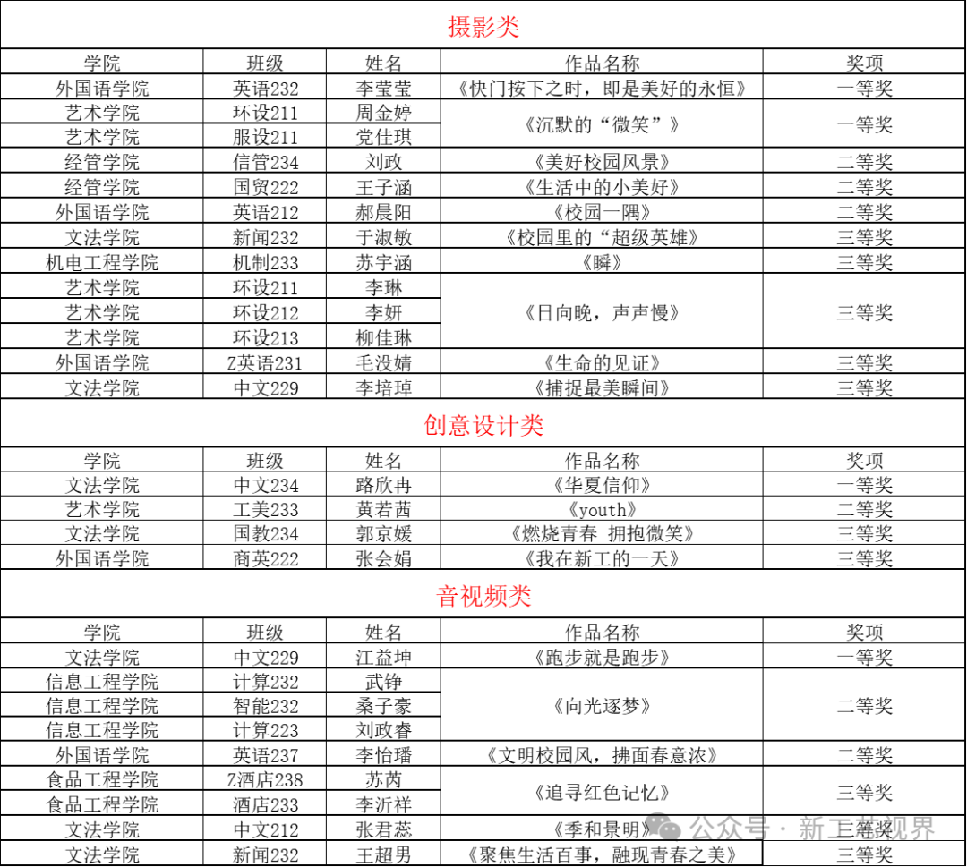 经过激烈的角逐和严格的评审,本次“聚焦青春生活百事,留意微笑美丽瞬间”校园融媒体大赛的结果终于新鲜出炉啦!