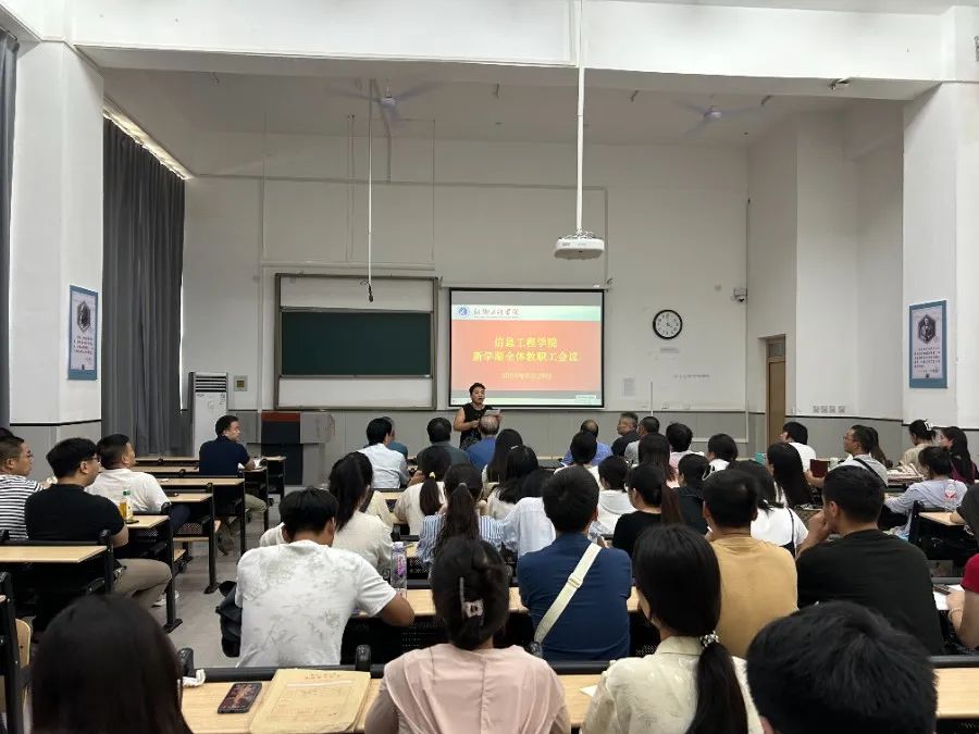 暑期垂尽,九月将至,为更好开展新学期教学相关工作,提高办学水平,信息工程学院于8月29日下午16点在B2教学楼1-108教室召开学院全体教职工新学期工作会议暨新进教师欢迎会。会议由信息工程学院副院长焦红艳主持,信息工程学院全体教职工参会。