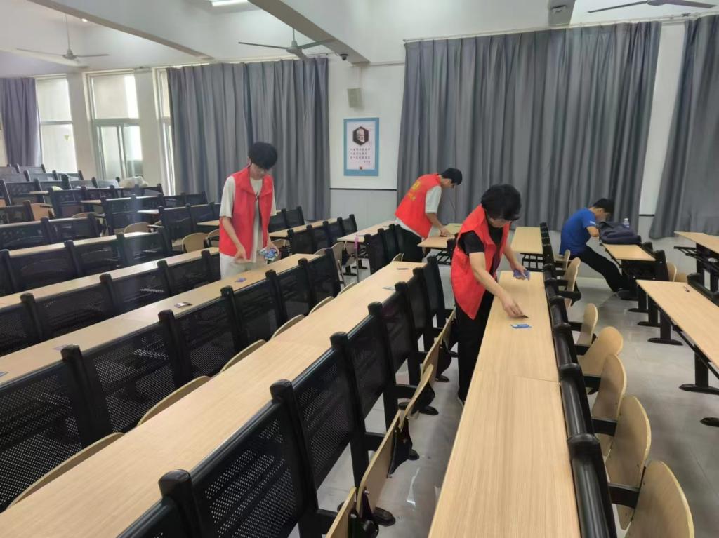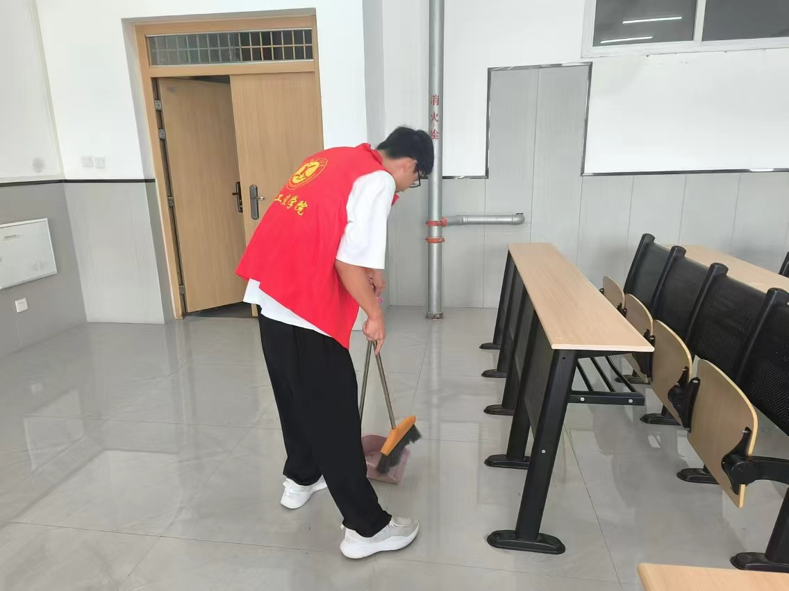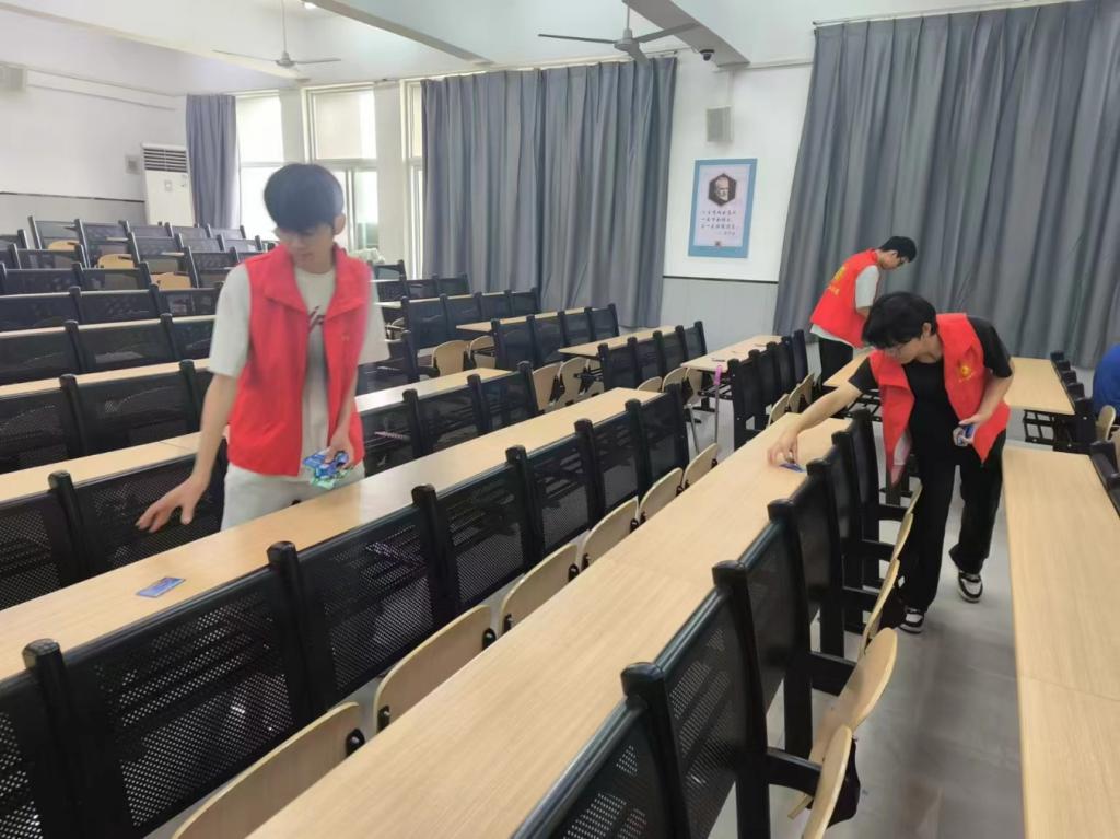 活动现场,学员们热情高涨地投入到教学楼卫生清扫工作中,他们将清理课桌上的小广告作为主要任务。每一张课桌都是他们的 “战场”,学员们拿着工具,认真细致地清除那些顽固的小广告,不放过任何一个角落。在这个过程中,“奉献、友爱、互助、进步” 的志愿者精神得到了充分体现。学员们分工明确,协同合作,有的负责清理,有的负责传递工具,有的负责检查清理效果,整个过程有条不紊。尽管汗水湿透了衣衫,他们也没有丝毫懈怠,因为他们深知自己的每一份努力都在为校园的整洁和文明贡献力量。